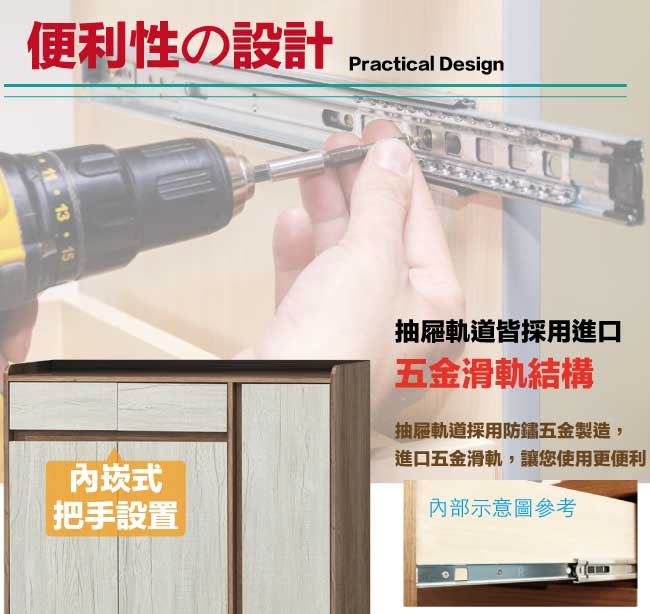 開門櫃+二抽屜+內&外開放層格
