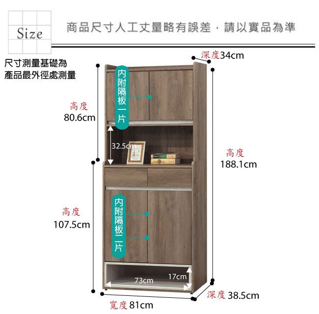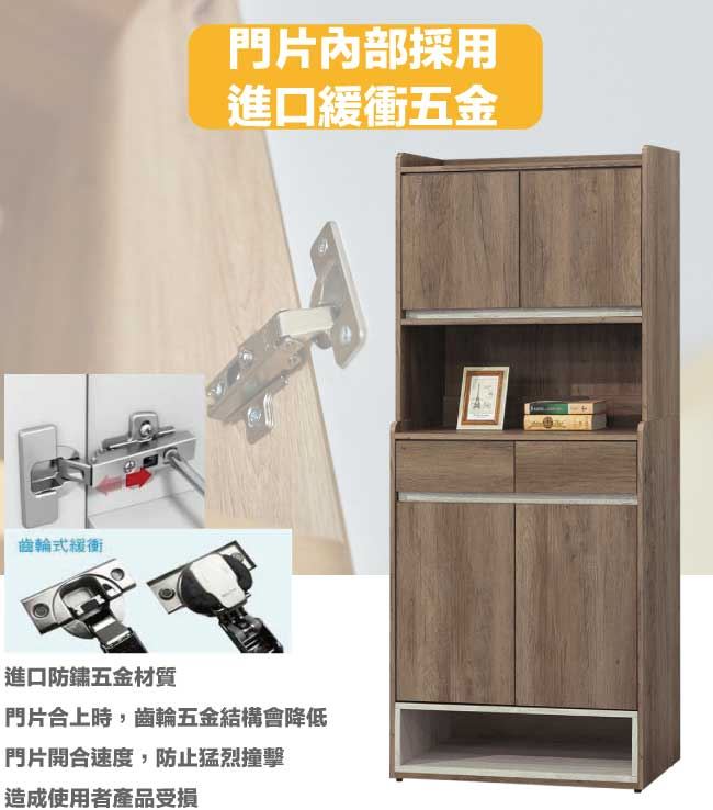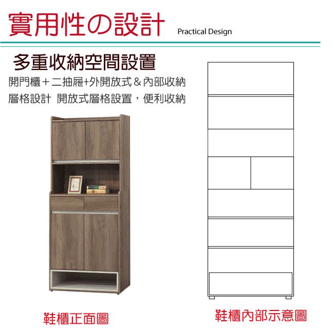 開門櫃+二抽屜+內&外開放層格