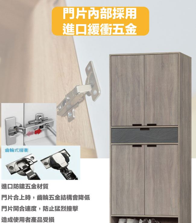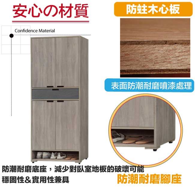 材質 | ◆產品名稱:【綠家居】卡克斯2.7尺四門單抽高玄關鞋櫃 尺寸:(寬)81x(深)40(高)205公分 ◆材質: 材質:防蛀木心板+防潮耐磨腳座+五金滑軌結構+防夾手緩衝門片五金 噴漆:防潮耐磨噴漆處理