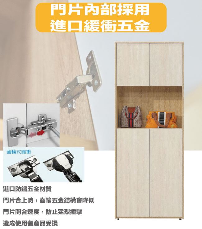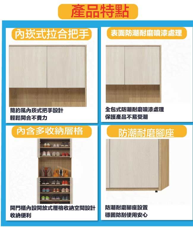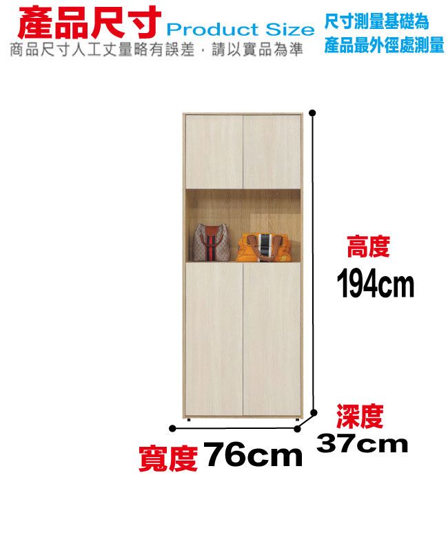 材質 | ◆產品名稱:【綠家居】夏夜雙色2.5尺四門中空玄關櫃 尺寸:(寬)76x(深)37(高)194/公分 ◆材質: 材質:防蛀木心板+防潮耐磨腳座+防夾手緩衝門片五金 噴漆:防潮耐磨噴漆處理 |
