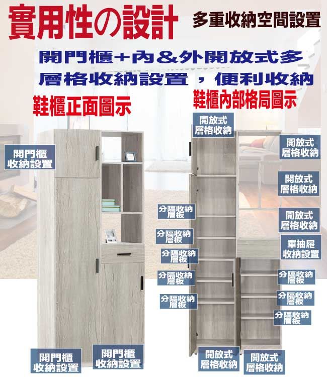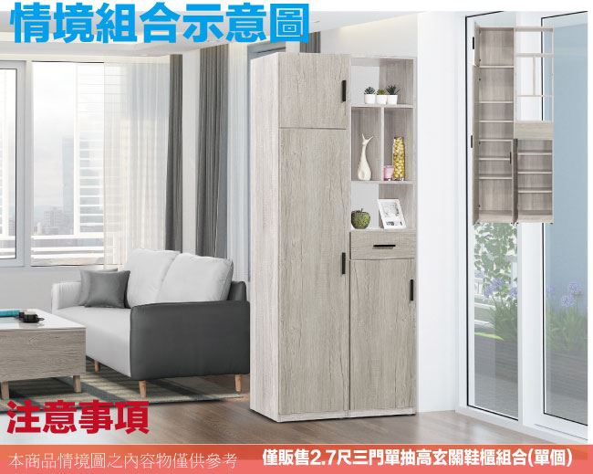 【綠家居】葛妮格雙色2.7尺三門單抽高玄關鞋櫃組合