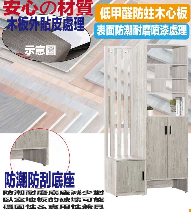 材質 | ◆產品名稱:【綠家居】葛妮格雙色3.3尺三門高屏風玄關座鞋櫃組合 尺寸:(寬)100x(深)40x(高)198/公分 ◆材質: 材質:防蛀木心板+防潮耐磨底座+防夾手緩衝門片五金 表面防潮耐磨噴漆處理 |