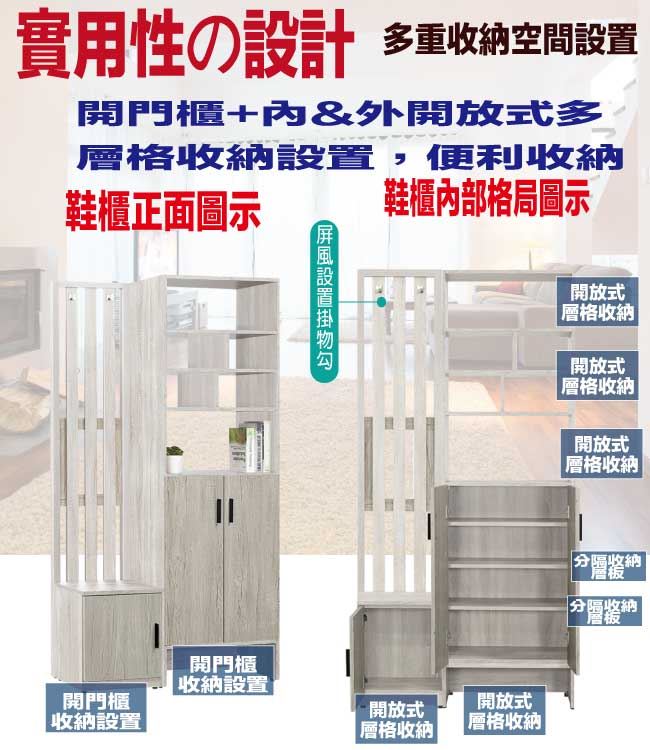 【綠家居】葛妮格雙色3.3尺三門高屏風玄關座鞋櫃組合