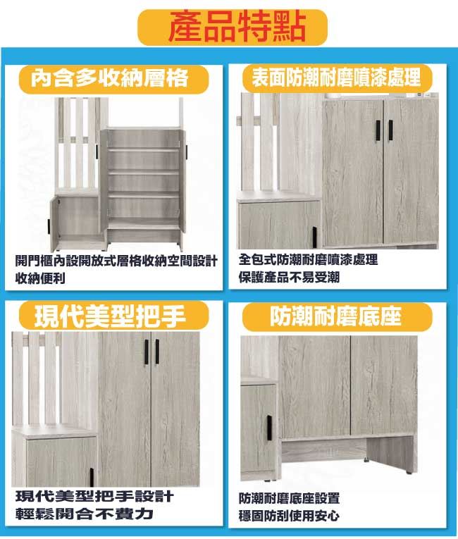 商 品 介 紹 | 【綠家居】葛妮格雙色3.3尺三門高屏風玄關座鞋櫃組合 木紋雙色系+現代簡約風格+安心材質製造,使用放心+搭配居家更便利,整體採用防蛀木心板+防潮耐磨底座+防夾手緩衝門片五金等材質製造搭配外層採用優莉坦耐磨全包式噴漆處理 ,採用開門櫃+穿鞋座櫃內可收納+內&外開放式層格等收納空間設計,全由專人配送到家,專業安心服務,替你省下更多時間! 【商品特色】 木紋雙色系+現代簡約風格+安心材質製造,使用放心+搭配居家更便利 防蛀木心板+防潮耐磨底座+防夾手緩衝門片五金等材質製造 採用開門櫃+穿鞋座櫃內可收納+內&外開放式層格等收納空間設計 此商品不需要DIY組立,此商品為組立後之成品 品質保證、專業設計、貼心服務 全由專人配送到家,專業安心服務,替您省下更多時間