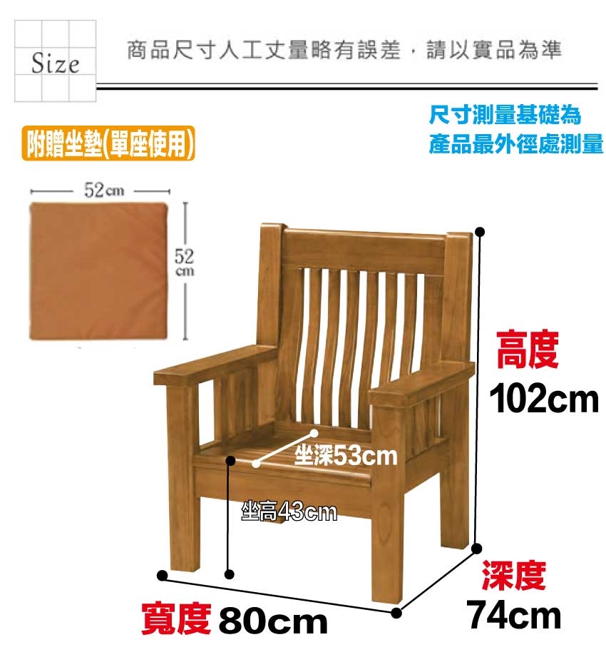 產品名稱:【綠家居】艾璞樟木色單人座柚木實木椅 - 尺寸:(寬)80x(深)74x(高)102/公分