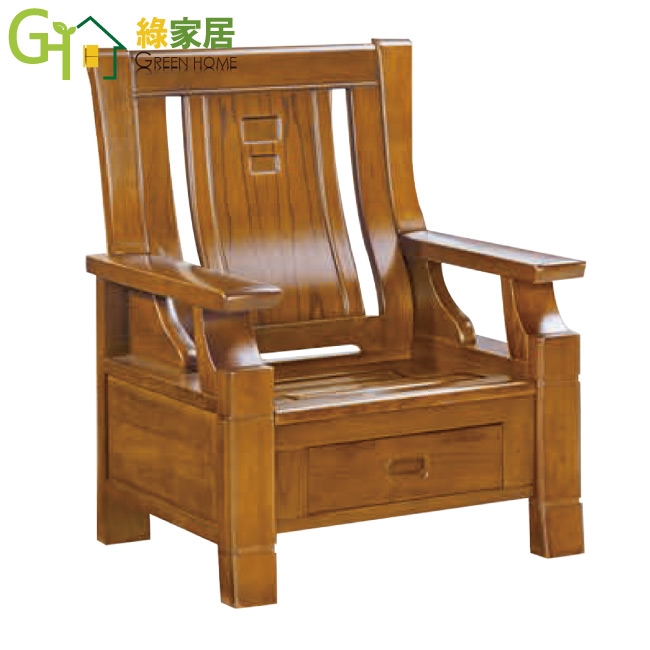 【綠家居】歌里柚木色單人座實木椅(底部抽屜可收納)