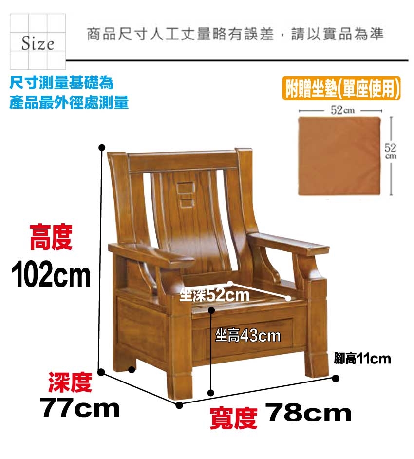 產品名稱:【綠家居】歌里柚木色單人座實木椅(底部抽屜可收納) - 尺寸:(寬)78x(深)77x(高)102/公分