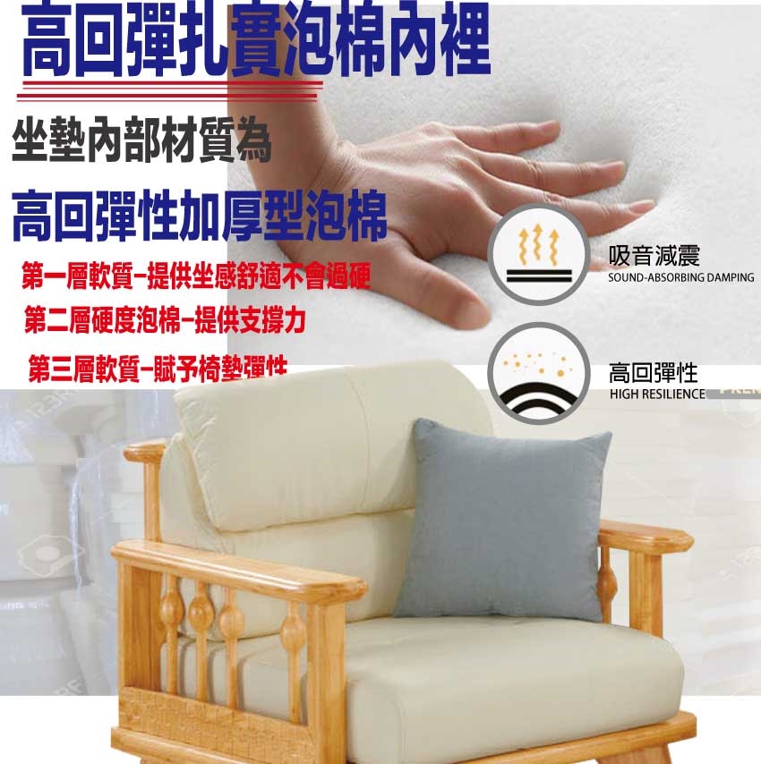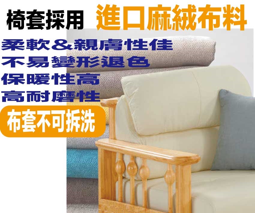 橡膠木實木+實木腳座&防刮腳粒+透氣麻絨布+高回彈力泡棉等安心材質製造