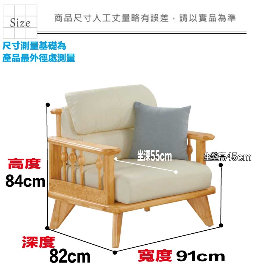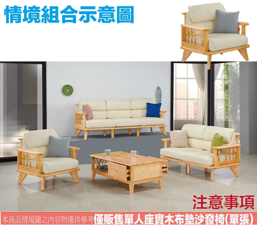 - 產品名稱:【綠家居】艾西實木麻絨布單人座沙發椅