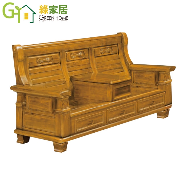 【綠家居】羅格樟木色柚木二人座實木椅(扶手&底部抽屜可收納)