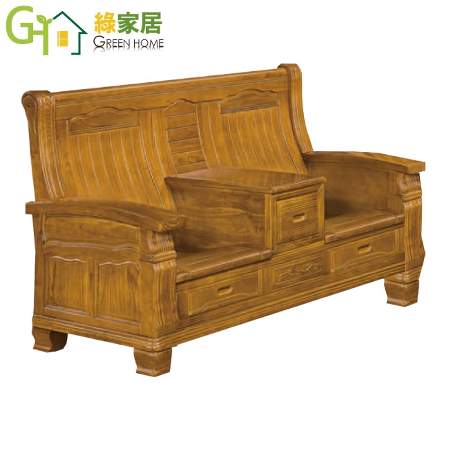 【綠家居】羅濤柚木色二人座柚木實木椅(底部抽屜可收納)