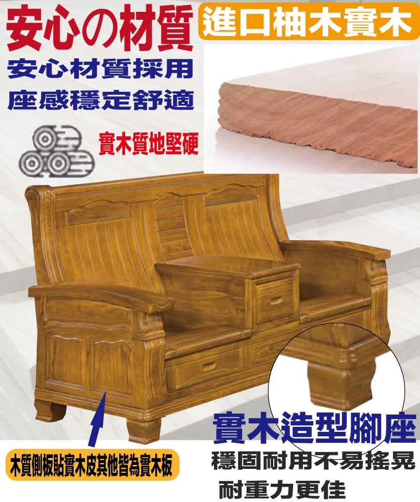 採用進口柚木實木材質+側板木心板貼實木皮等安心材質製造