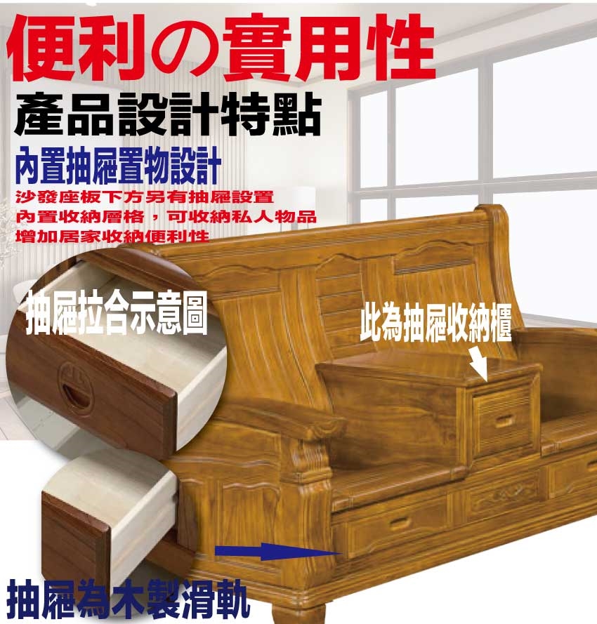 柚木色系+扶手&底部抽屜可收納+安心材質製造,使用放心+搭配居家更便利