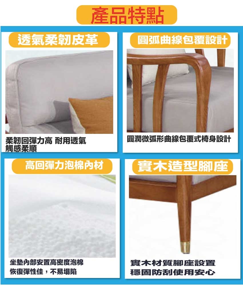 白蠟木實木+實木腳座&金屬腳套+底部防刮腳粒+透氣柔韌皮革+加厚多層高回彈力高密度泡棉等安心材質製造