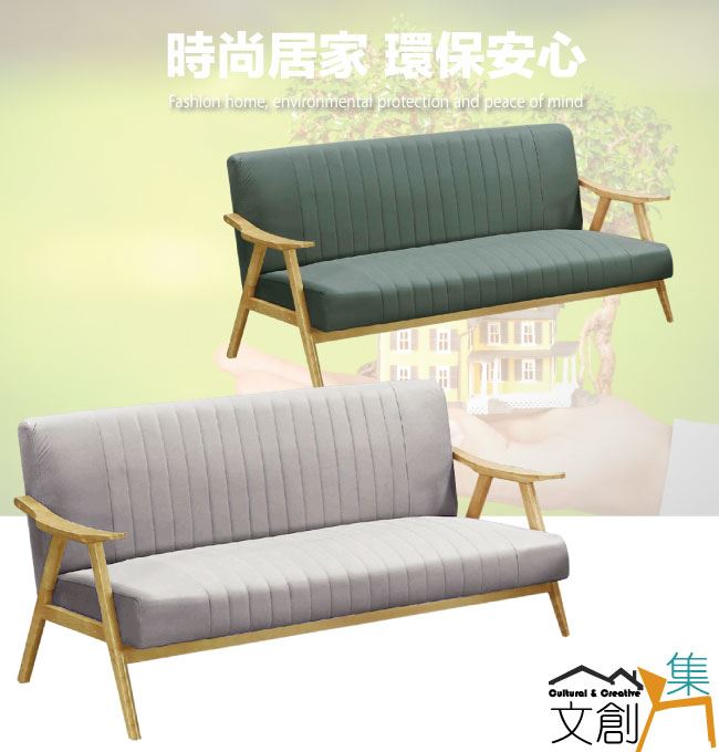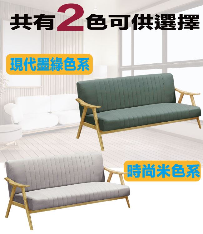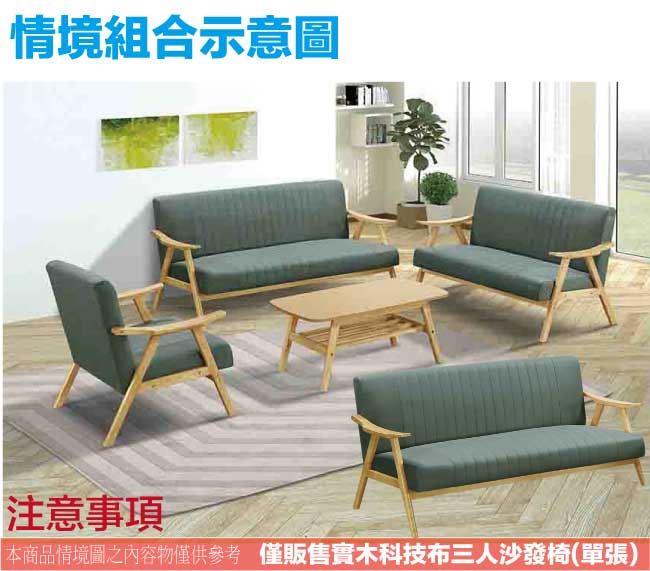【綠家居】迪爾科技布實木三人座沙發椅(二色可選)