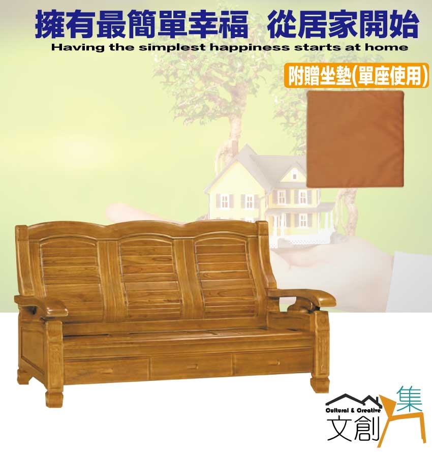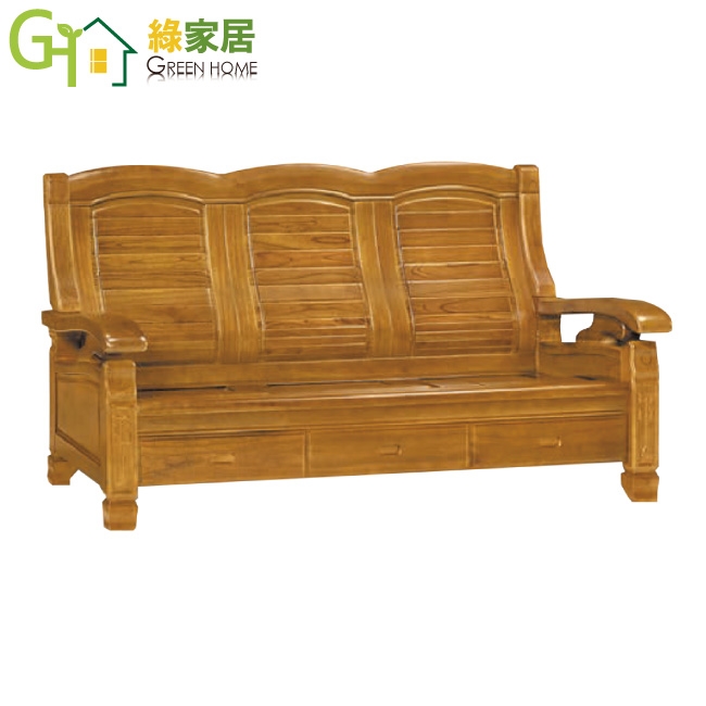 【綠家居】海灣樟木色三人座柚木實木椅(底部抽屜可收納)