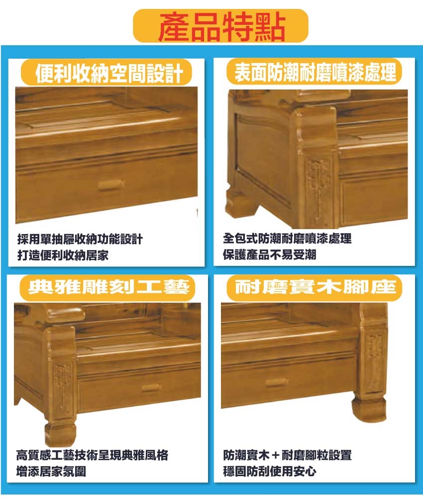 採用進口柚木實木材質+側板木心板貼實木皮等安心材質製造