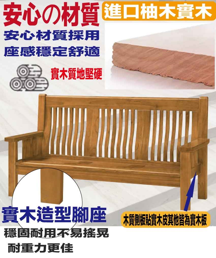 ★偏遠地區需額外加收運費,下標請先問與答詢問★ ★下訂前注意 由於商品流動較快,下訂前請先詢問是否有貨在下訂喔~★ 【綠家居】艾璞樟木色三人座柚木實木椅 樟木紋色系+現代典雅風格+安心材質製造,使用放心+搭配居家更便利,採用進口柚木實木材質+側板木心板貼實木皮等安心材質製造 ,全由專人配送到家,專業安心服務,替你省下更多時間!