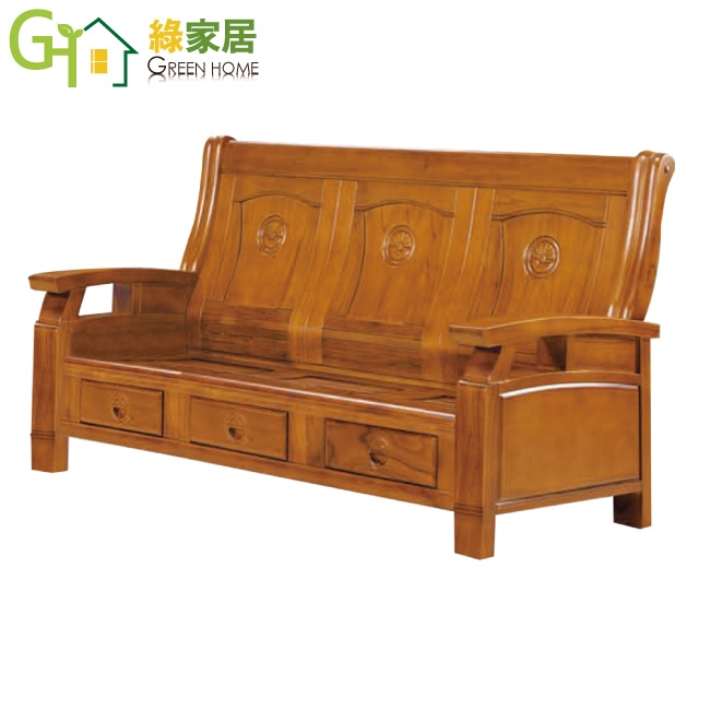 【綠家居】巴戈柚木色三人座實木椅(底部抽屜可收納)