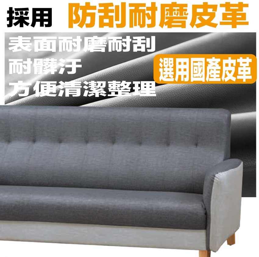【綠家居】檀香山雙色耐磨皮革三人座沙發椅