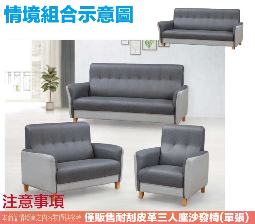 產品名稱:【綠家居】檀香山雙色耐磨皮革三人座沙發椅 - 3人沙發椅尺寸:(寬)185x(深)86x(高)93/公分