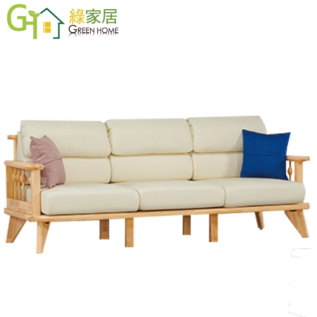 【綠家居】艾西實木麻絨布三人座沙發椅