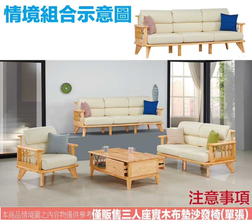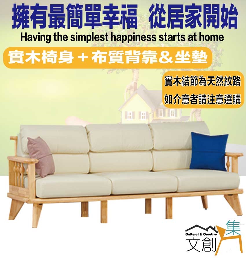 - 產品名稱:【綠家居】艾西實木麻絨布三人座沙發椅