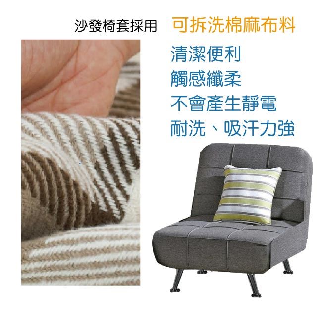 【綠家居】皮諾 時尚灰可拆洗棉麻布單人座沙發椅/沙發床