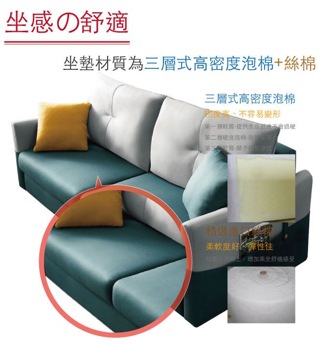- 三層式高密度泡棉+絲綿材質