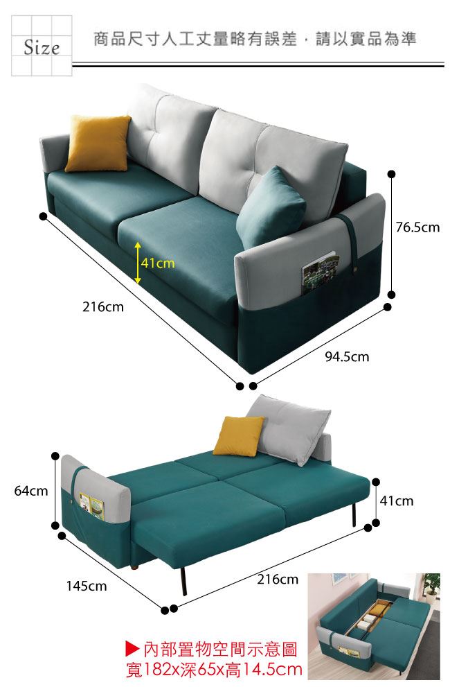 材質 | ◆產品名稱: 【綠家居】諾西韋 拉合式可拆洗亞麻布沙發椅/沙發床 產品尺寸: 沙發尺寸:(寬)216x(深)94.5x(高)76.5/公分 沙發床尺寸:(寬)216x(深)145x(坐墊高)41/公分 材質:桐木實木骨架+不銹鋼五金結構+防鏽五金腳座 布料:可拆洗亞麻布 坐墊:三層式高密度泡棉+絲棉