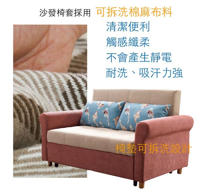 【綠家居】恩德 拉合式可拆洗棉麻布沙發椅/沙發床