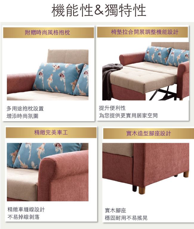商品介紹 | 【綠家居】恩德 拉合式可拆洗棉麻布沙發椅/沙發床 時尚雙色系+安心材質設計,就是這種頂級質感的設計,能輕鬆地融入各種空間風格,採用桐木實木&鋼管骨架+不銹鋼五金結構+實木&防鏽黑漆腳座+可拆洗棉麻布+高密度三層式泡棉等安心材質,品質安心有保障,現在購買專人送到府服務,免組裝+免運費,讓你省時省力省運費! 【商品特色】 時尚雙色系+現代美型外觀+安心材質設計 採用拉合式變化方式,可輕易將沙發變成沙發床使用,增加居家便利性 沙發坐墊拉開後內附有可收納空間設計,增加居家實用性 桐木實木&鋼管骨架+不銹鋼五金結構+實木&防鏽黑漆腳座+可拆洗棉麻布+高密度三層式泡棉等安心材質 專人送貨到府免組裝免運費服務,讓您省時又便利 |