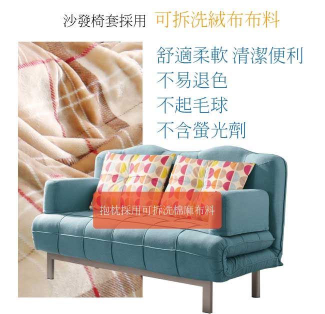 【綠家居】克波利時尚灰可拆洗絨布展開式沙發/沙發床
