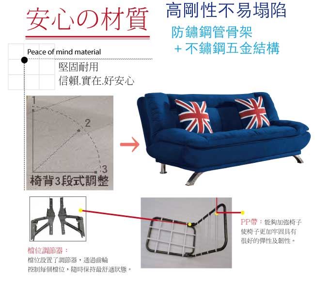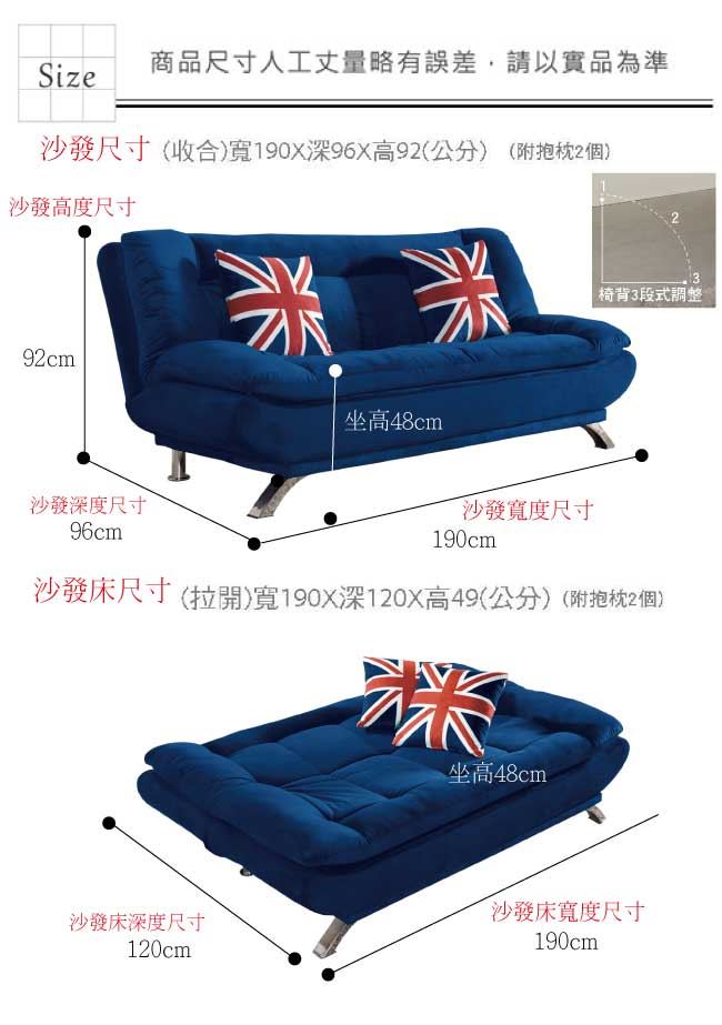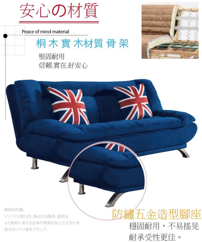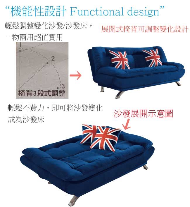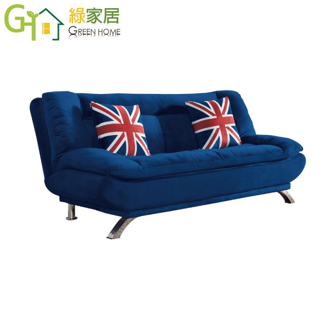 【綠家居】奧伽時尚藍加厚綸滌絨布展開式沙發/沙發床
