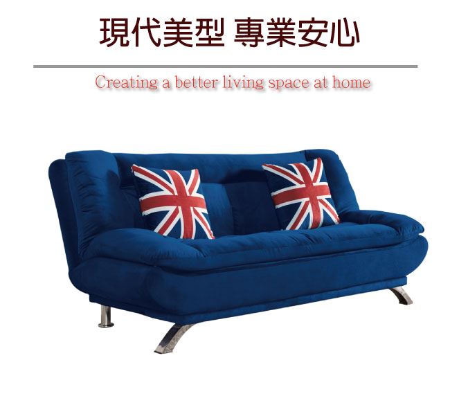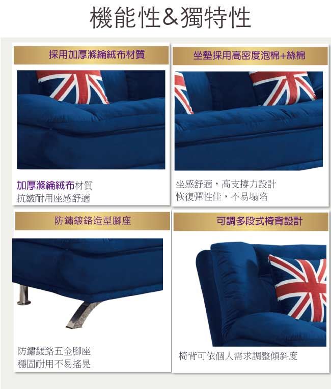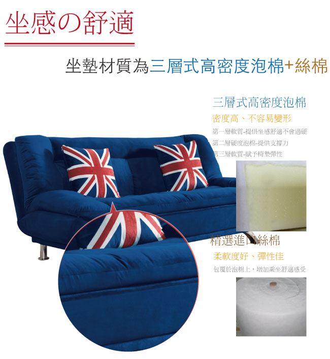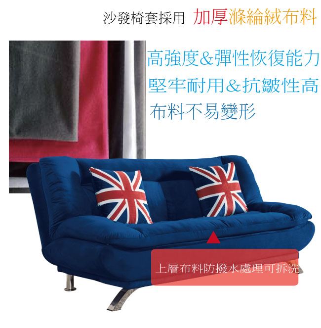 商品 介紹 | 【綠家居】奧伽時尚藍加厚綸滌絨布展開式沙發/沙發床 時尚藍色系+現代美型外觀+安心材質設計,就是這種頂級質感的設計,能輕鬆地融入各種空間風格,採用實木骨架+防鏽五金腳座+不鏽鋼五金結構+加厚綸滌絨布(上層可拆洗+防撥水處理)+高密度三層式泡棉等安心材質,品質安心有保障,現在購買專人送到府服務,免組裝+免運費,讓你省時省力省運費! 【商品特色】 時尚藍色系+現代美型外觀+安心材質設計 採用椅背可展開式變化設計,沙發可輕易展開變成沙發床使用,增加居家便利性 實木骨架+防鏽五金腳座+不鏽鋼五金結構+加厚綸滌絨布(上層可拆洗+防撥水處理)+高密度三層式泡棉等安心材質 專人送貨到府免組裝免運費服務,讓您省時又便利 |