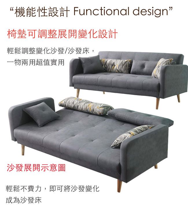 【綠家居】卡伯恩 時尚灰透氣棉滌布沙發椅/沙發床/沙發床(展開式機能設計)