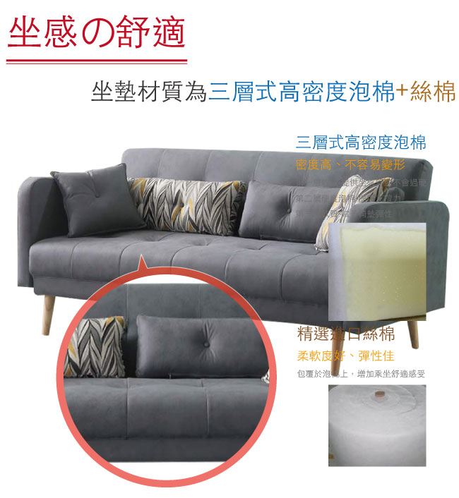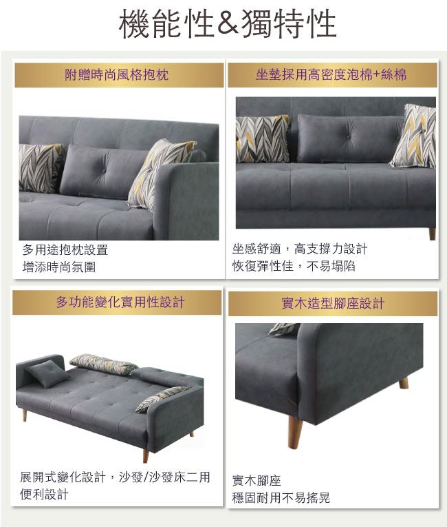 商品 介紹 | 【綠家居】卡伯恩 時尚灰透氣棉滌布沙發椅/沙發床/沙發床(展開式機能設計) 時尚灰色系+現代美型外觀+安心材質設計,就是這種頂級質感的設計,能輕鬆地融入各種空間風格,採用松木實木骨架&椅身+防潮實木腳座+加厚透氣棉滌布+高密度三層式泡棉等安心材質,品質安心有保障,現在購買專人送到府服務,免組裝+免運費,讓你省時省力省運費! 【商品特色】 時尚灰色系+現代美型外觀+安心材質設計 展開式機能設計,可輕鬆變化沙發與沙發床使用,可隨居家擺設自由擺放,增加居家便利性 松木實木骨架&椅身+防潮實木腳座+加厚透氣棉滌布+高密度三層式泡棉等安心材質 專人送貨到府免組裝免運費服務,讓您省時又便利 |