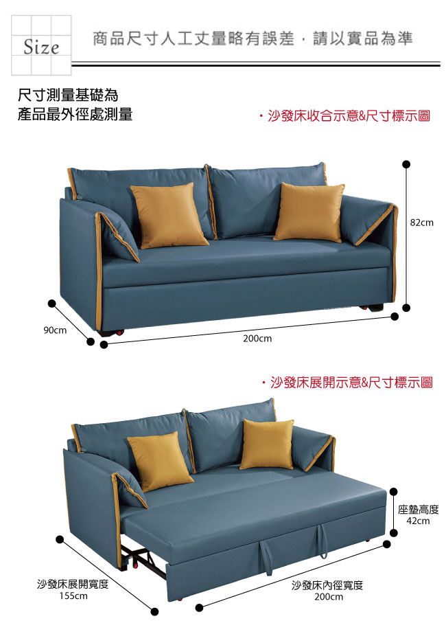 材質 | ◆產品名稱: 【綠家居】維肯 時尚雙色柔韌科技布沙發/沙發床(拉合式機能設計) 產品尺寸: 收合尺寸:(寬)200x(深)90x(高)82/公分 展開尺寸:(內寬)200x(深)155x(坐高)42/公分 材質:桐木實木骨架椅身+防鏽金屬結構+防鏽黑漆腳座 布料:柔韌仿皮革科技布料 坐墊:三層式高密度泡棉+絲棉