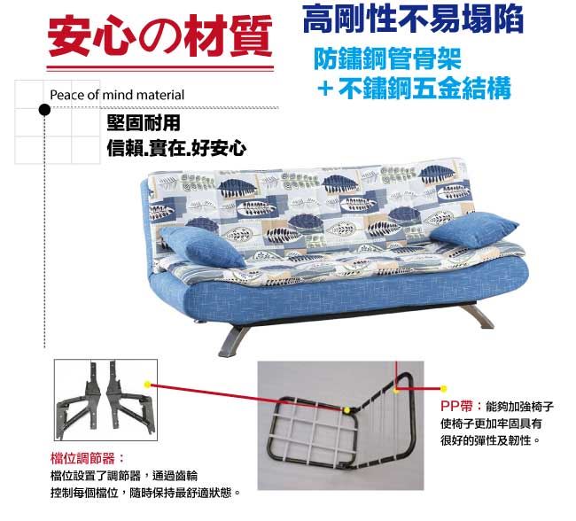 商品 介紹 | 【綠家居】藍歐透氣亞麻布展開式沙發椅/沙發床 時尚藍色系+現代美型外觀+安心材質設計,就是這種頂級質感的設計,能輕鬆地融入各種空間風格,採用防鏽鋼管結構&不鏽鋼五金結構+防鏽金屬腳座+三層式高密度泡棉+透氣亞麻布等安心材質,品質安心有保障,現在購買專人送到府服務,免組裝+免運費,讓你省時省力省運費! 【商品特色】 時尚藍色系+現代美型外觀+安心材質設計 沙發將椅背展開後加上椅背分段式可調設計,十分輕易即可變成沙發床使用.實用機能性設計打造居家便利性 採用防鏽鋼管結構&不鏽鋼五金結構+防鏽金屬腳座+三層式高密度泡棉+透氣亞麻布等安心材質 專人送貨到府免組裝免運費服務,讓您省時又便利 |