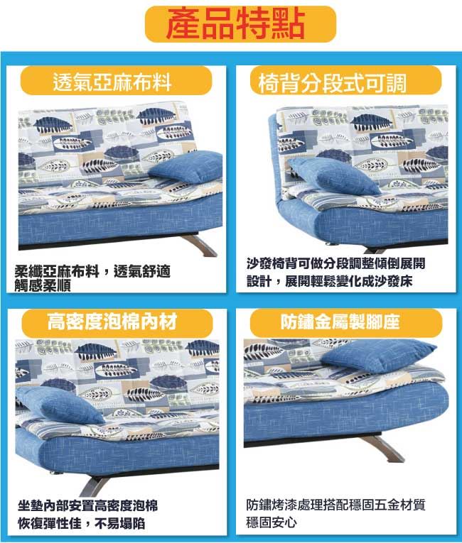 【綠家居】藍歐透氣亞麻布展開式沙發椅/沙發床