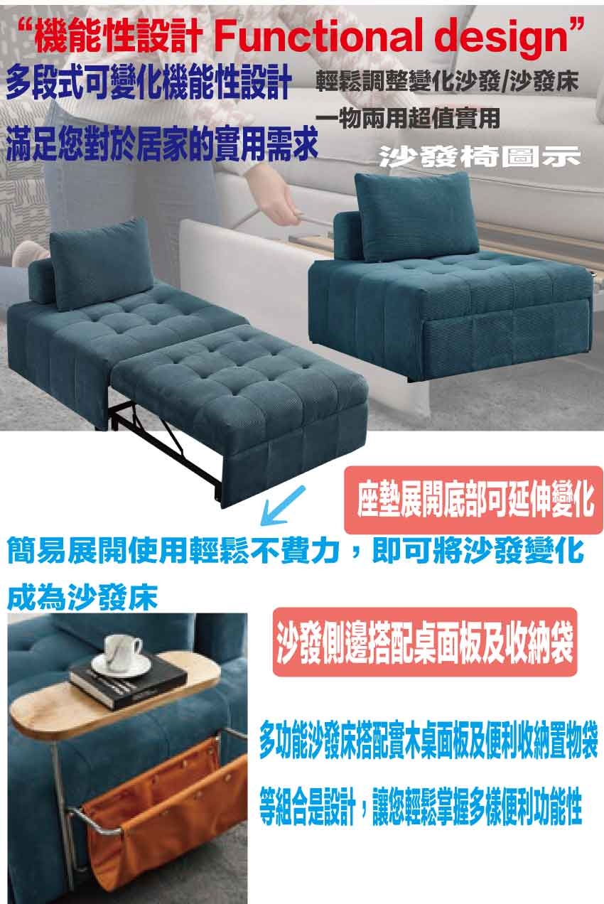 產品名稱:【綠家居】馬莉藍灰短絨布前拉式單人沙發椅/沙發床(沙發床&側邊几組合)