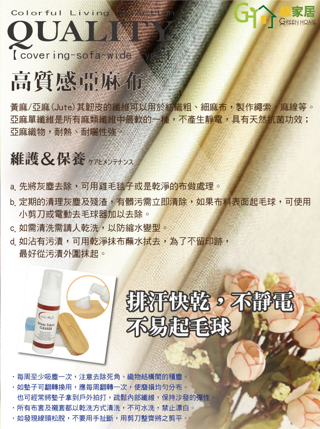可拆洗亞麻布質椅套,營造亮麗溫馨的居家生活