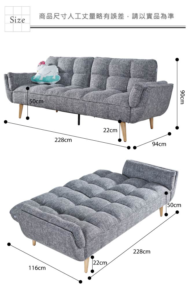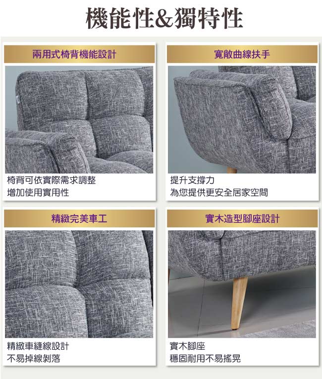 ◆產品名稱:【綠家居】馬榭可 時尚灰亞麻布二用沙發/沙發床(展開式機能設計)