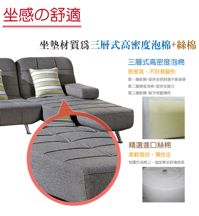 可拆洗亞麻布+高密度泡棉+絲綿等材質,坐感舒適