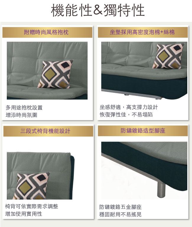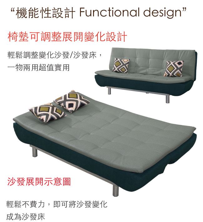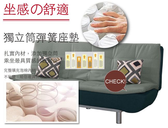 商品介紹 | 【綠家居】科塞 現代雙色機能貓抓皮革沙發/沙發床(沙發/沙發床二用+展開式機能設計) 現代雙色系+現代美型外觀+安心材質設計,就是這種頂級質感的設計,能輕鬆地融入各種空間風格,採用桐木實木&防鏽鋼管骨架+透氣亞麻布+不銹鋼五金結構+防鏽五金腳座+耐磨貓抓皮革+高密度三層式泡棉等安心材質,品質安心有保障,現在購買專人送到府服務,免組裝+免運費,讓你省時省力省運費! 【商品特色】 現代雙色系+現代美型外觀+安心材質設計 沙發/沙發床二用+拉合式機能設計+坐墊下方收納空間設置 輕易展開即可變化成沙發床使用,增加空間便利性 桐木實木&防鏽鋼管骨架+不銹鋼五金結構+透氣亞麻布+防鏽五金腳座+耐磨貓抓皮革+高密度三層式泡棉等安心材質 專人送貨到府免組裝免運費服務,讓您省時又便利 |