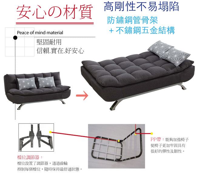 商品 介紹 | 【綠家居】柯喬透氣亞麻布展開式沙發床 時尚灰色系+現代美型外觀+安心材質設計,就是這種頂級質感的設計,能輕鬆地融入各種空間風格,採用實木骨架椅身&不鏽鋼五金結構+透氣亞麻布+防鏽五金腳座+高密度三層式泡棉等安心材質,品質安心有保障,現在購買專人送到府服務,免組裝+免運費,讓你省時省力省運費! 【商品特色】 時尚灰色系+現代美型外觀+安心材質設計 沙發椅背展開後即可變成沙發床使用.實用機能性設計打造居家便利性 實木骨架椅身&不鏽鋼五金結構+透氣亞麻布+防鏽五金腳座+高密度三層式泡棉等安心材質 專人送貨到府免組裝免運費服務,讓您省時又便利 |