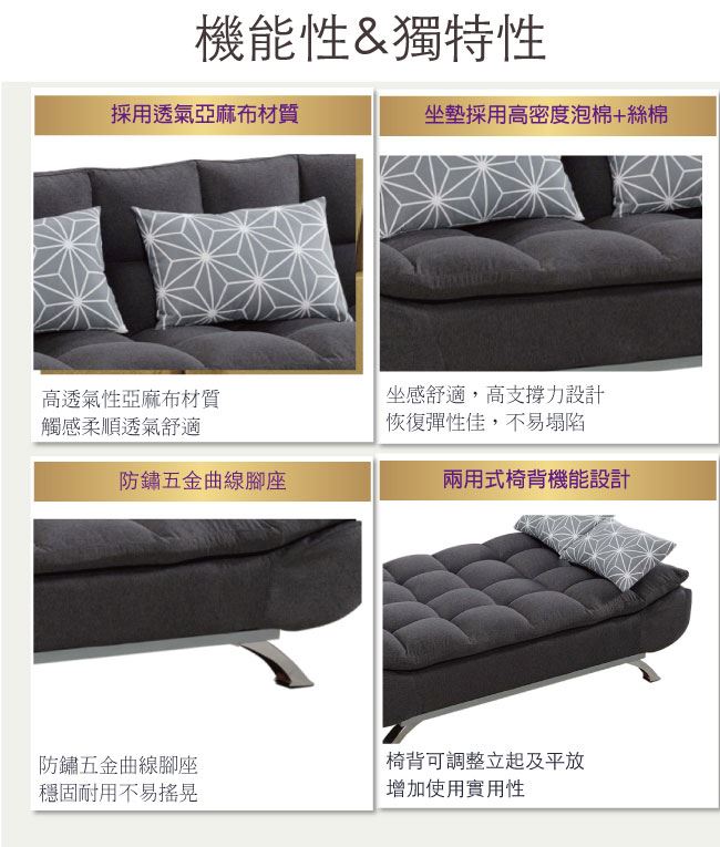 【綠家居】柯喬透氣亞麻布展開式沙發床