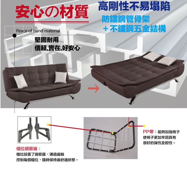 材質 | 產品名稱:【綠家居】拜亞迪透氣皮革展開式沙發椅/沙發床(二色可選) 產品尺寸: 沙發尺寸:(寬)182x(深)75x(高)84/公分 沙發床尺寸:(寬)182x(深)110x(座高)42/公分 材質:實木材質框架+防鏽鋼管結構&不鏽鋼五金結構+防鏽五金腳座 皮革:透氣柔韌皮革 坐墊:高回彈力加厚泡棉 另附抱枕二個(不可挑色)