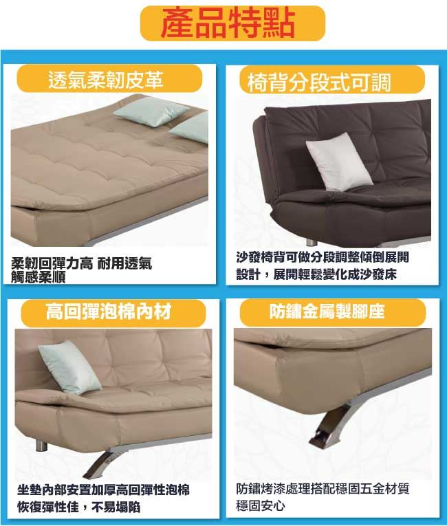 【綠家居】拜亞迪透氣皮革展開式沙發椅/沙發床(二色可選)