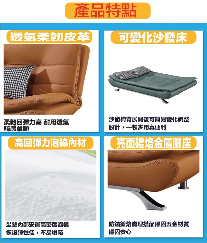 - 產品名稱:【綠家居】艾班透氣皮革展開式沙發床(二色系可選+展開式機能設計)